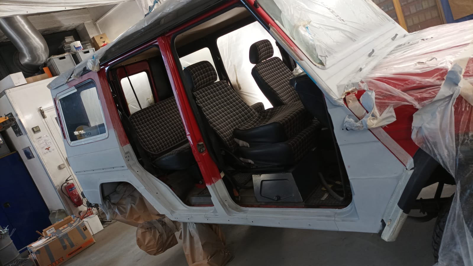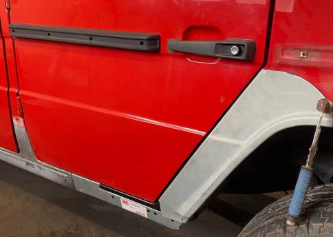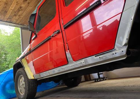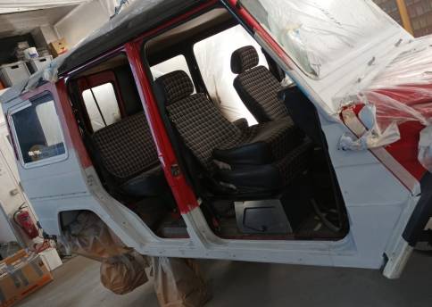 Angeboten wir ein sehr attraktiver Mercedes Benz 300GD Lang (W460) mit Flügeltür u. 9 Sitzen.