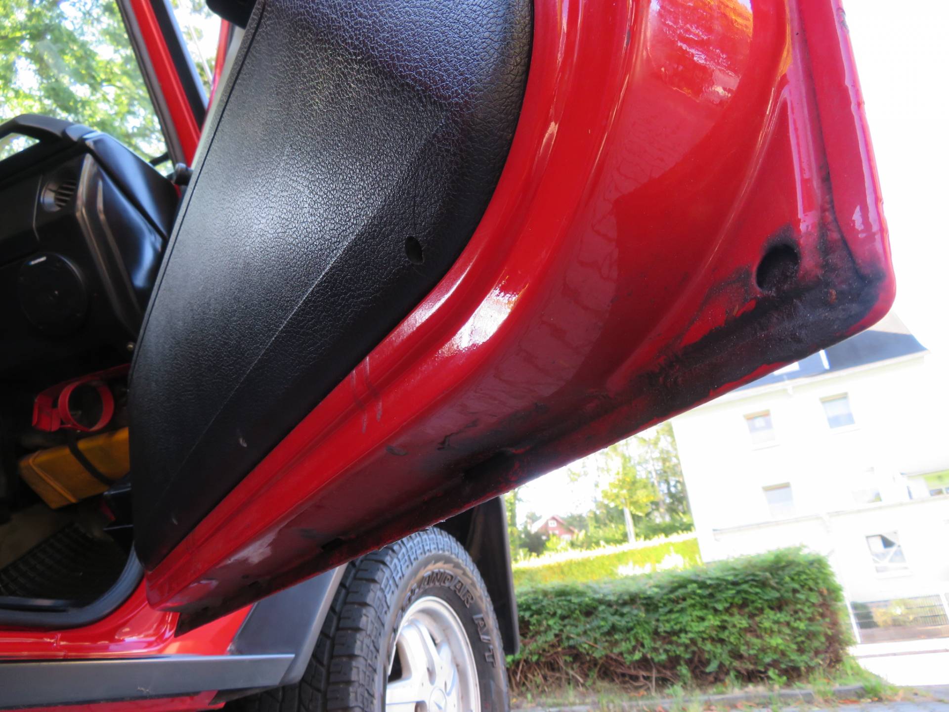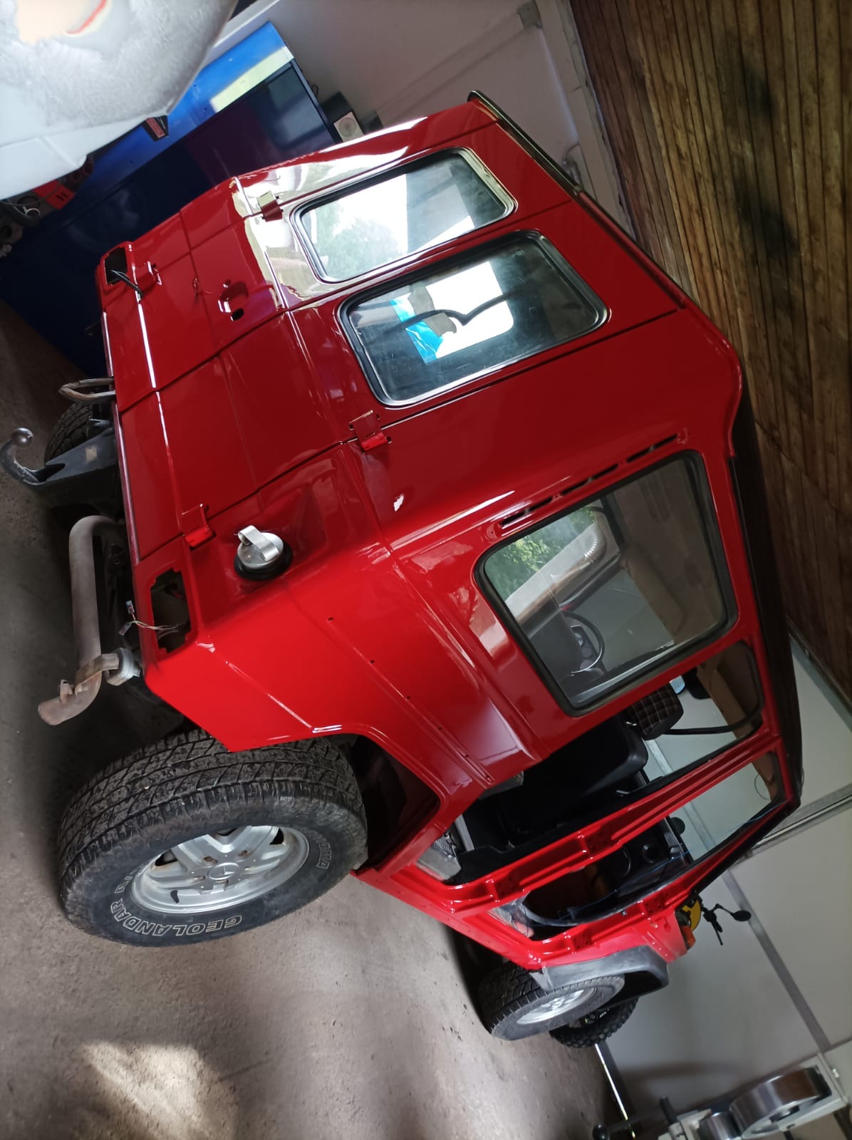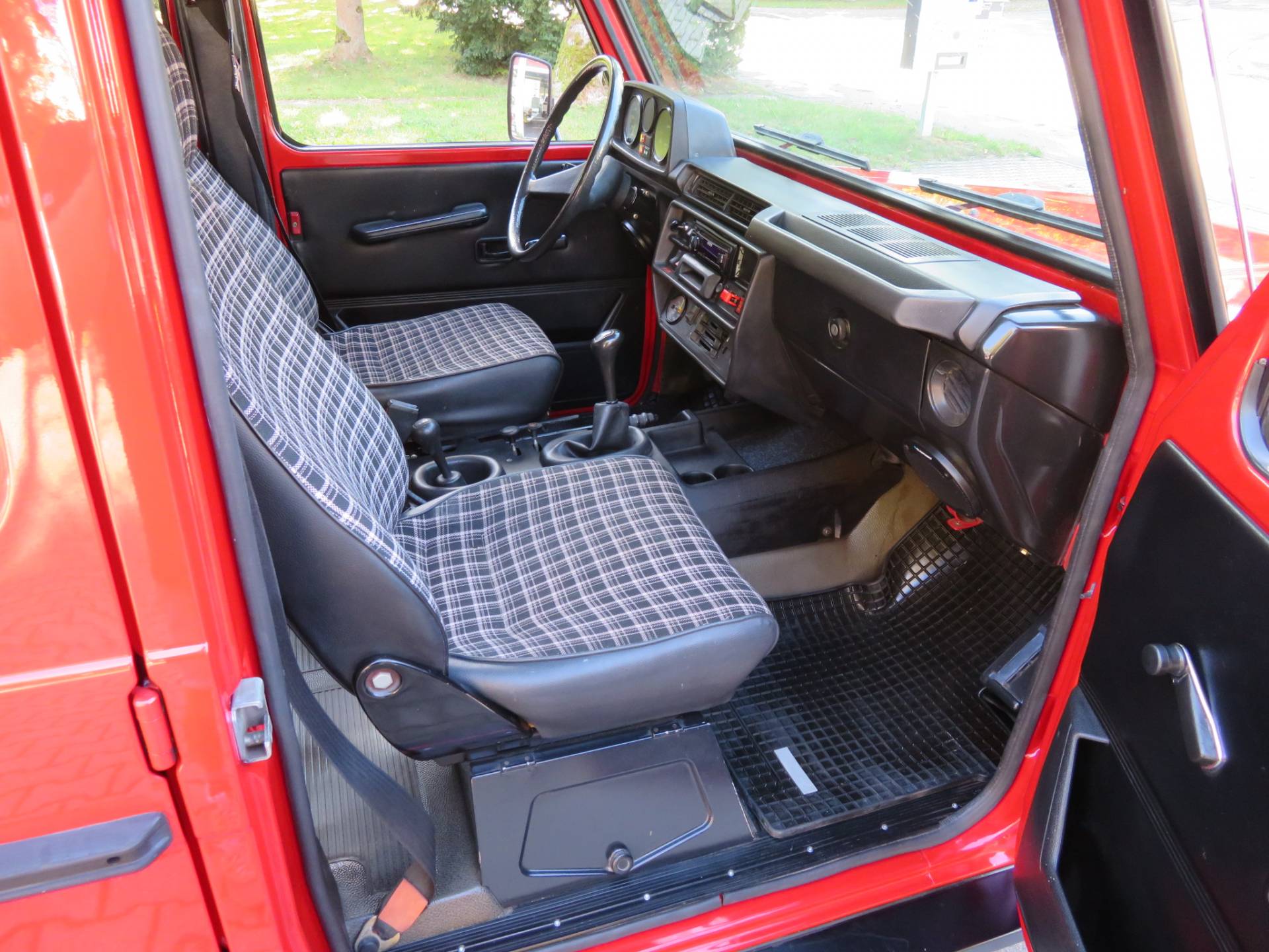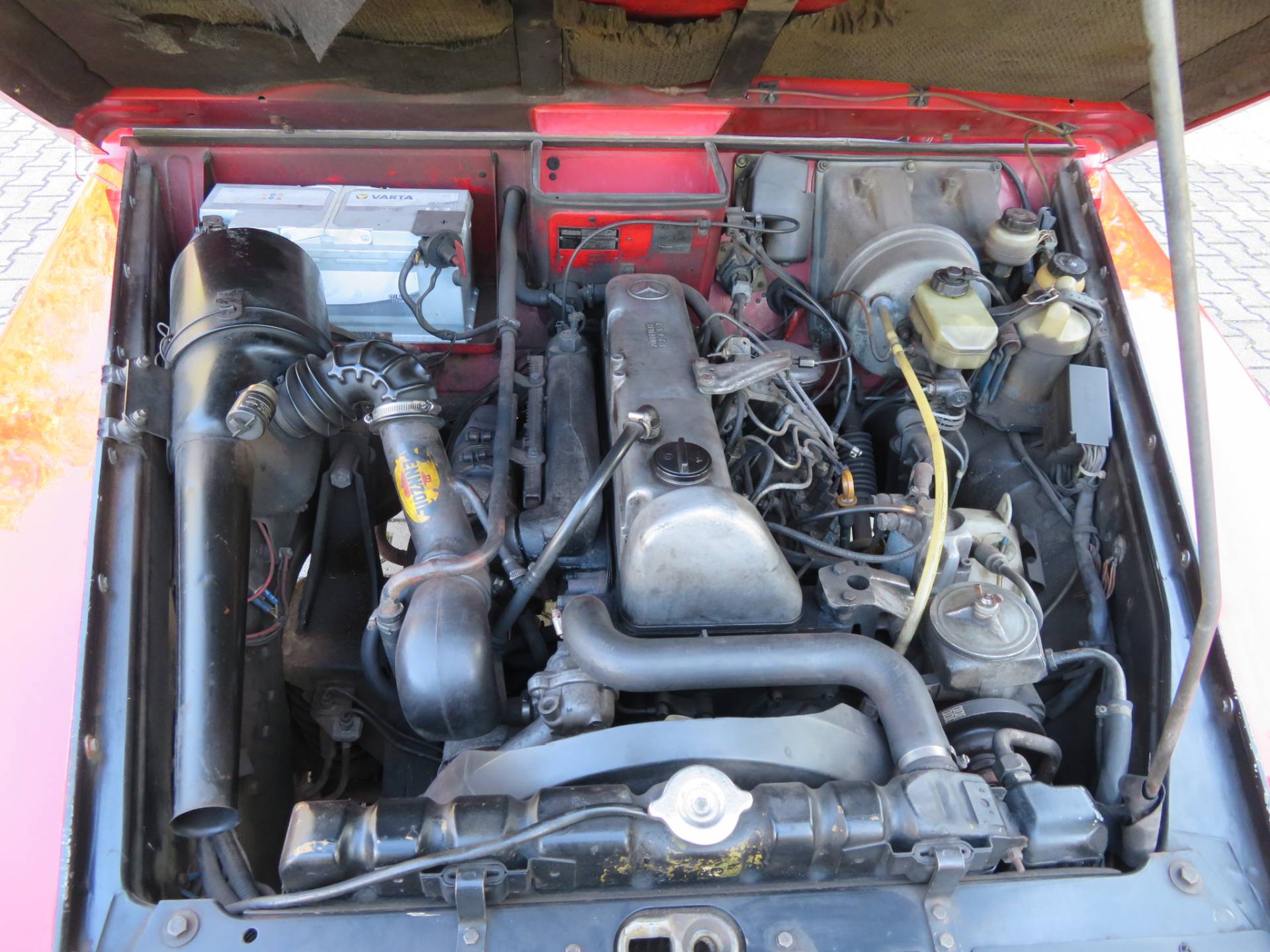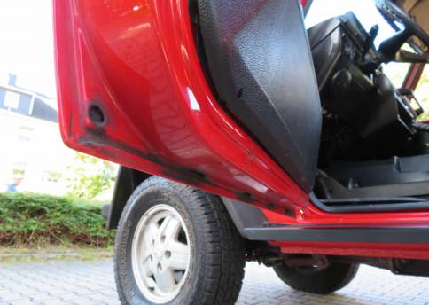 Die Technik arbeitet komplett einwandfrei. Das 4-Gang Getriebe lässt sich sauber schalten, der Motor läuft sehr schön rund und hat richtig Dampf ohne dabei schwarze Abgaswolken zu produzieren, die Bremsen arbeiten gleichmäßig, das Fahrwerk ist ohne Nebengeräusche. Allrad u. Sperren arbeiten einwandfrei. Zu erwähnen ist, es ist nicht mehr der originale Motor verbaut. Wann u. warum er erneuert wurde, ist nicht bekannt. Die Laufleistung ist als abgelesen anzusehen. Dr Motor wurde, auf Wunsch des Eigentümers von uns nicht gereinigt, um dem Käufer einen ehrlichen Wagen präsentieren zu können.