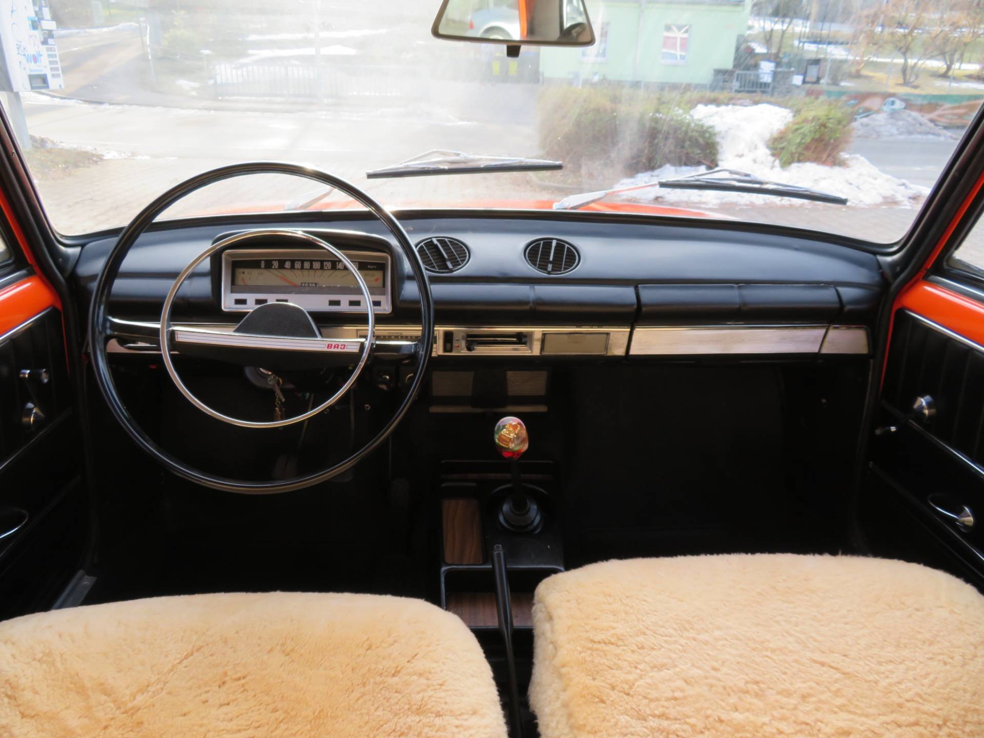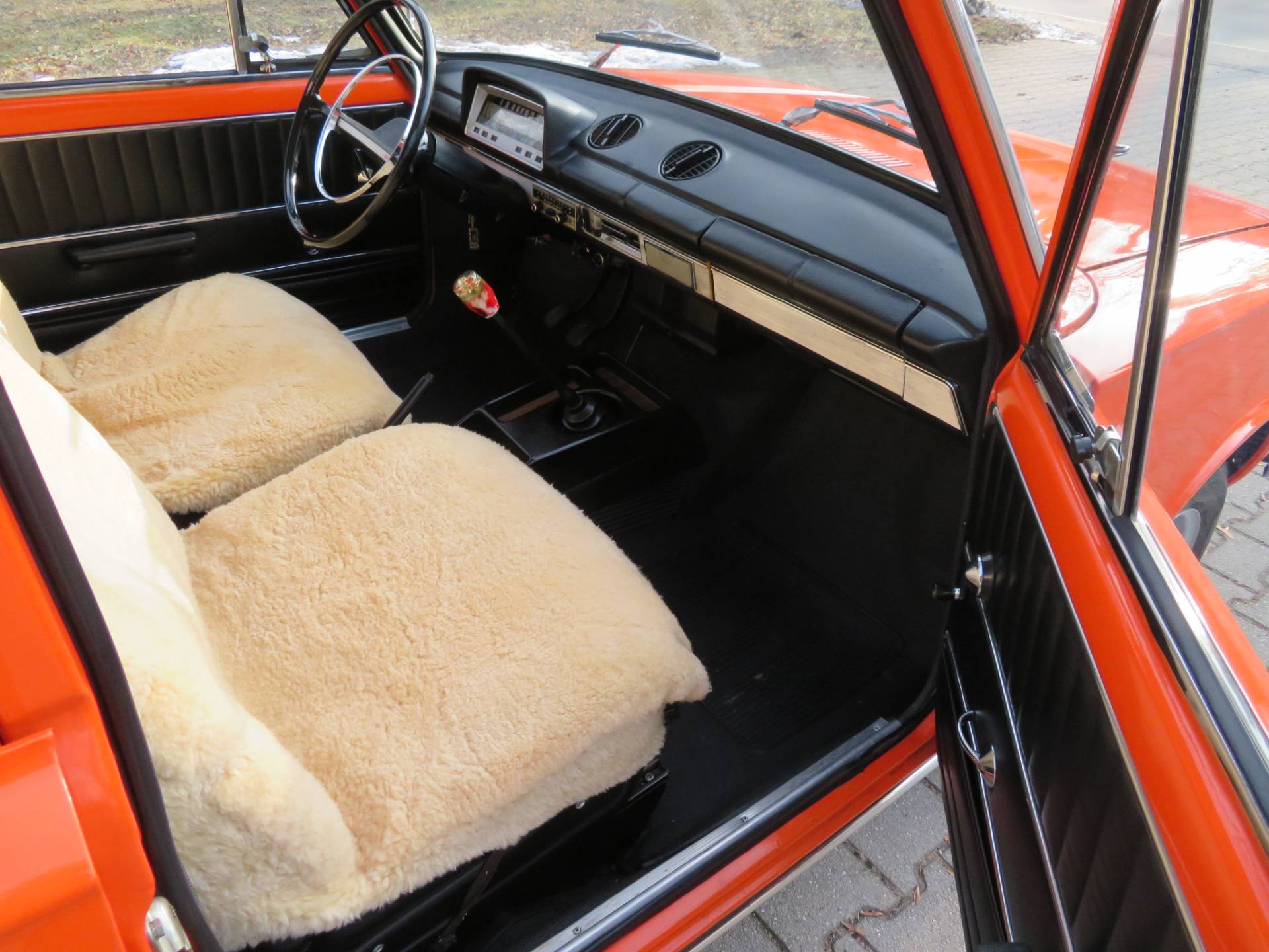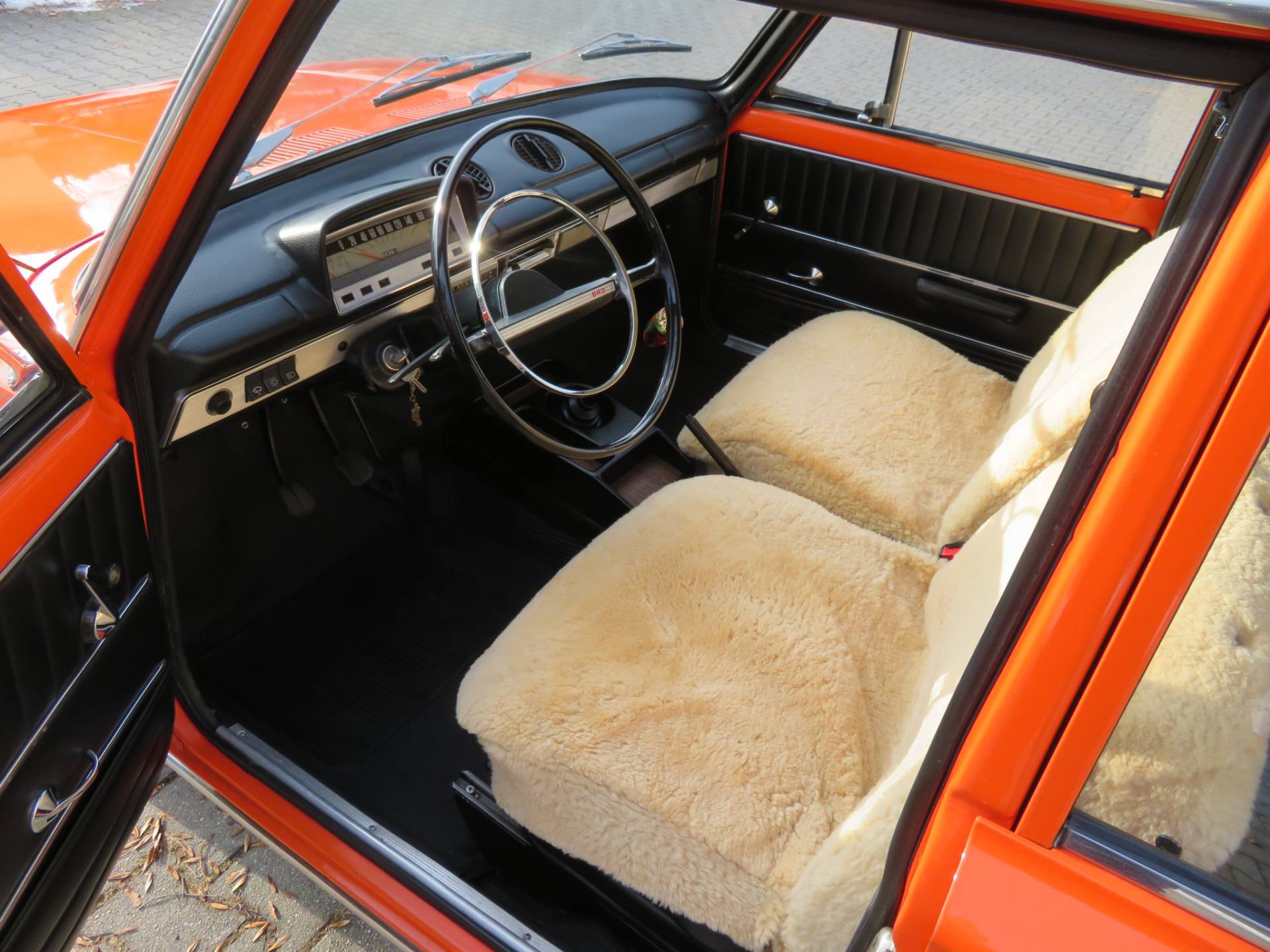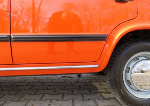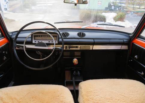Schöne zeitgenössische Details sind die Lammfellbezüge, die Bremsleuchten auf der Hutablage, die Mittelkonsole Made in Ungarn, die Rammschutzleisten an den Türen sowie der Schaltknauf mit Intarsien. Zum Wagen gibt es eine deutsche Bedienungsanleitung, alle TÜV Berichte seit 2017, den ungarischen Brief in Kopie, eine Reparaturanleitung, das org. Werkzeug in der großen Tasche und das kleine DDR Werkzeug auf dem Kotflügel im Kofferraum sowie einige Ersatzteile die man immer so mit dabei hatte.