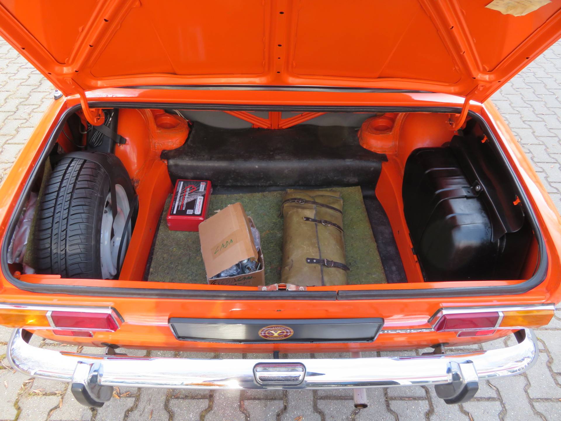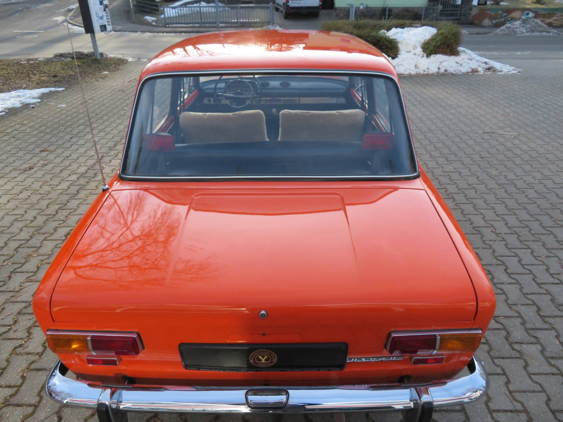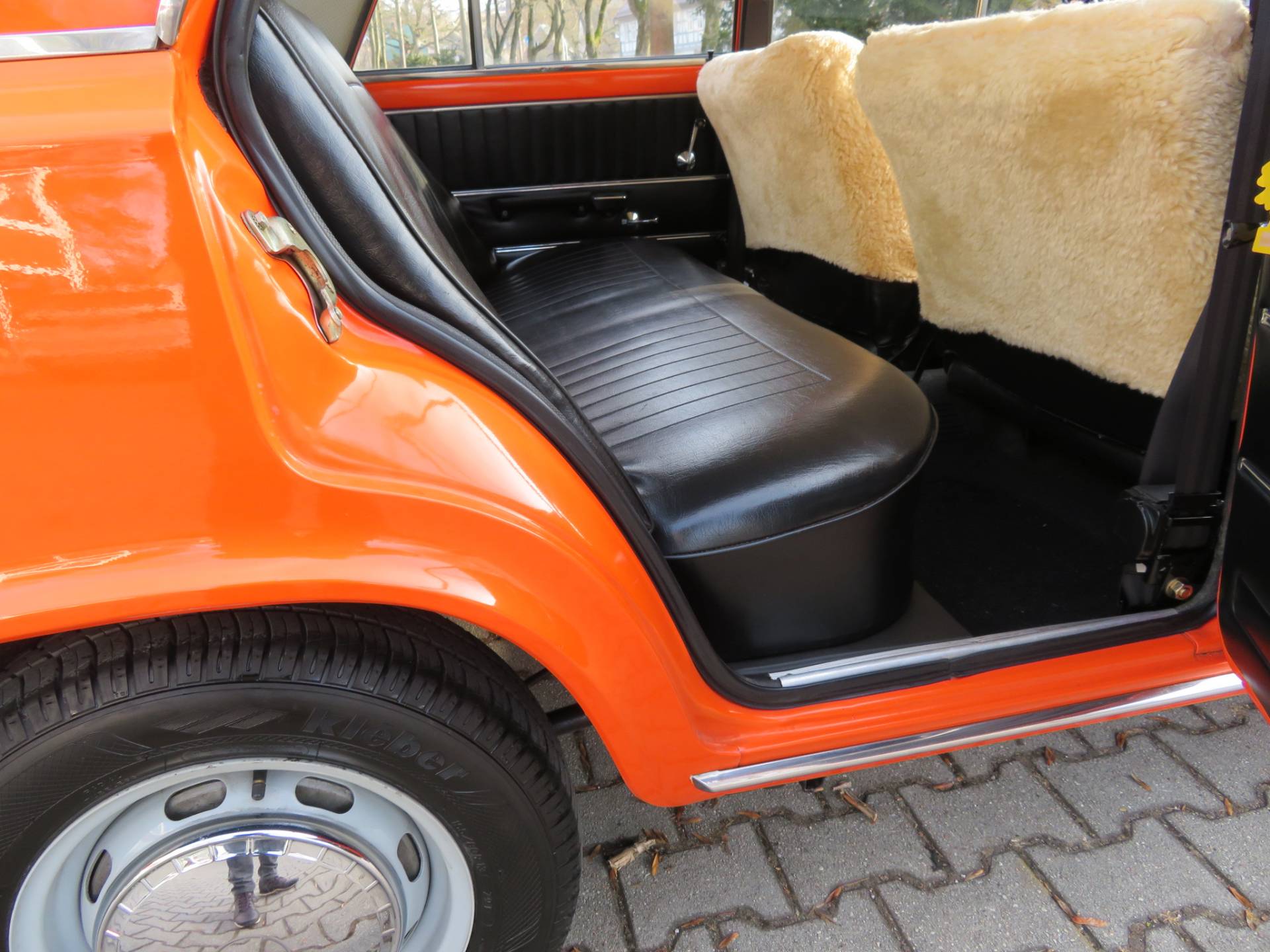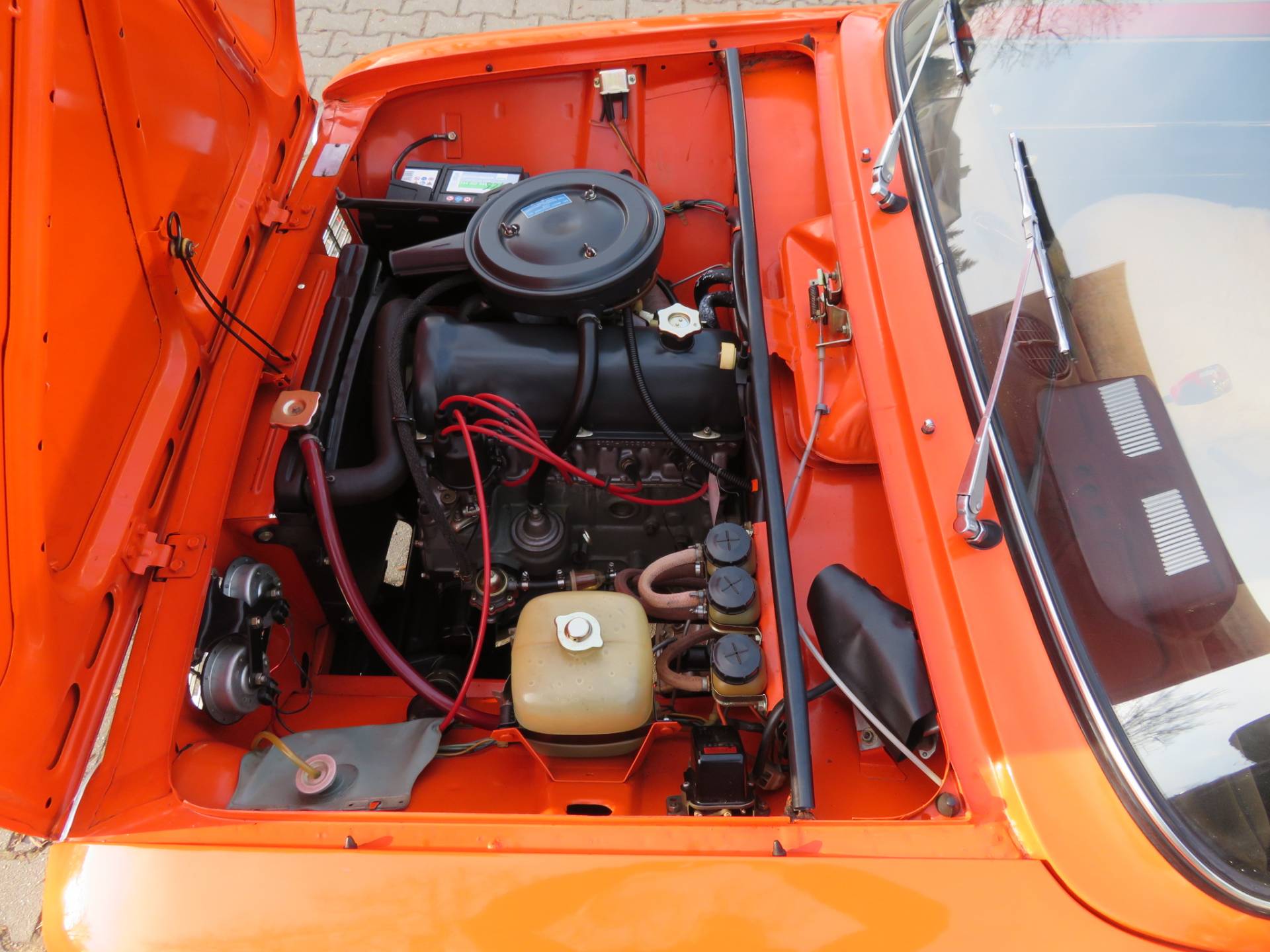 Schöne zeitgenössische Details sind die Lammfellbezüge, die Bremsleuchten auf der Hutablage, die Mittelkonsole Made in Ungarn, die Rammschutzleisten an den Türen sowie der Schaltknauf mit Intarsien. Zum Wagen gibt es eine deutsche Bedienungsanleitung, alle TÜV Berichte seit 2017, den ungarischen Brief in Kopie, eine Reparaturanleitung, das org. Werkzeug in der großen Tasche und das kleine DDR Werkzeug auf dem Kotflügel im Kofferraum sowie einige Ersatzteile die man immer so mit dabei hatte.