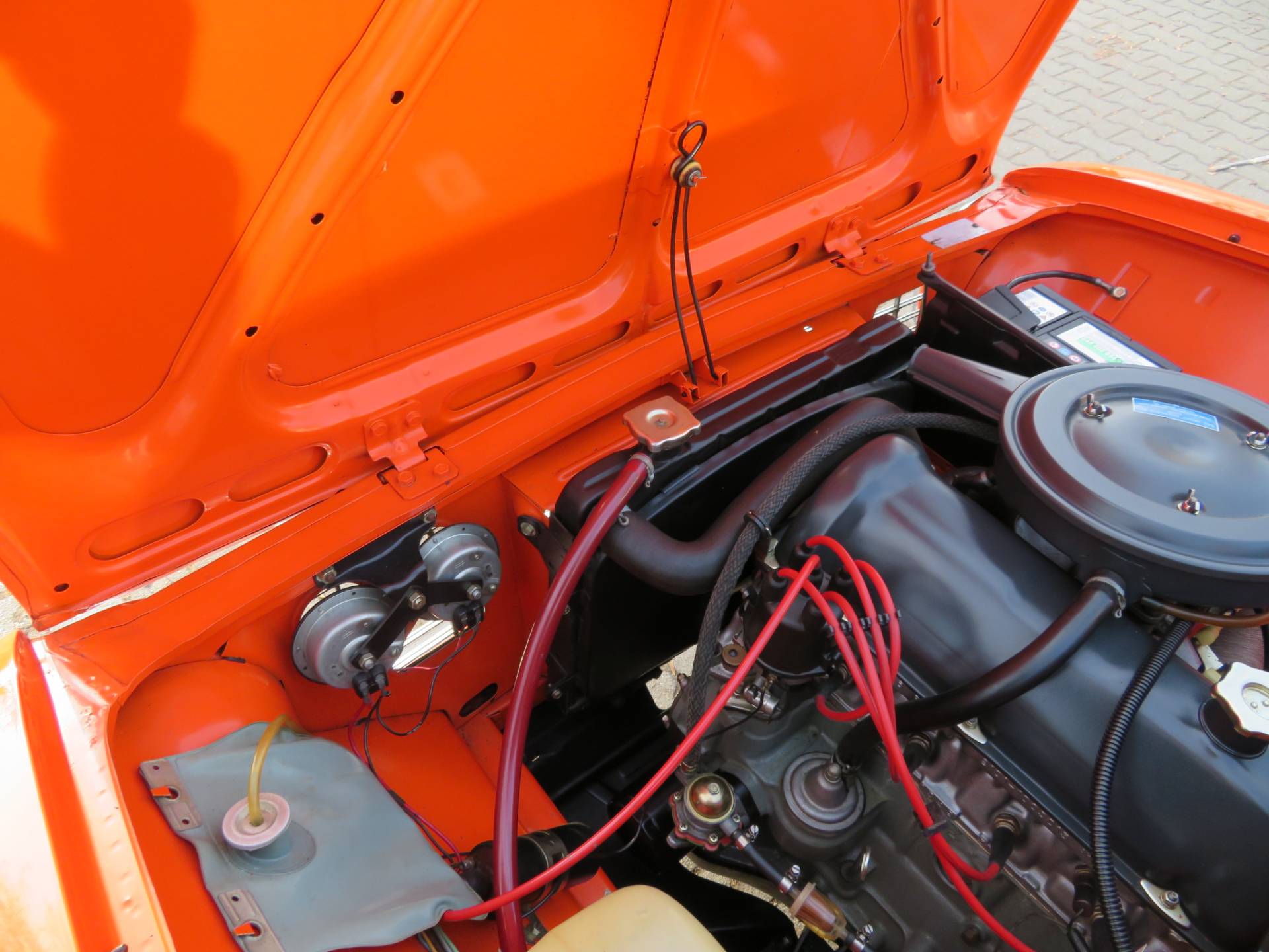 Technisch ist der Wagen ohne Bedenken. Er hat TÜV bis 03/2027. Der Motor springt sofort an und läuft perfekt. Das Getriebe lässt sich tadellos schalten, Fahrwerk u. Antriebsstrang sind frei von Nebengeräuschen. Die Bremsen arbeiten gleichmäßig. Die Lenkung ist ohne Spiel. Alles im und am Wagen funktioniert wie es soll. Nur das Radio bringt keinen Sender mehr, da es nicht für UKW Empfang ausgerüstet ist.