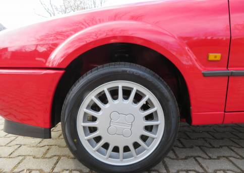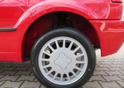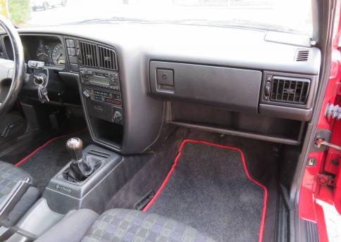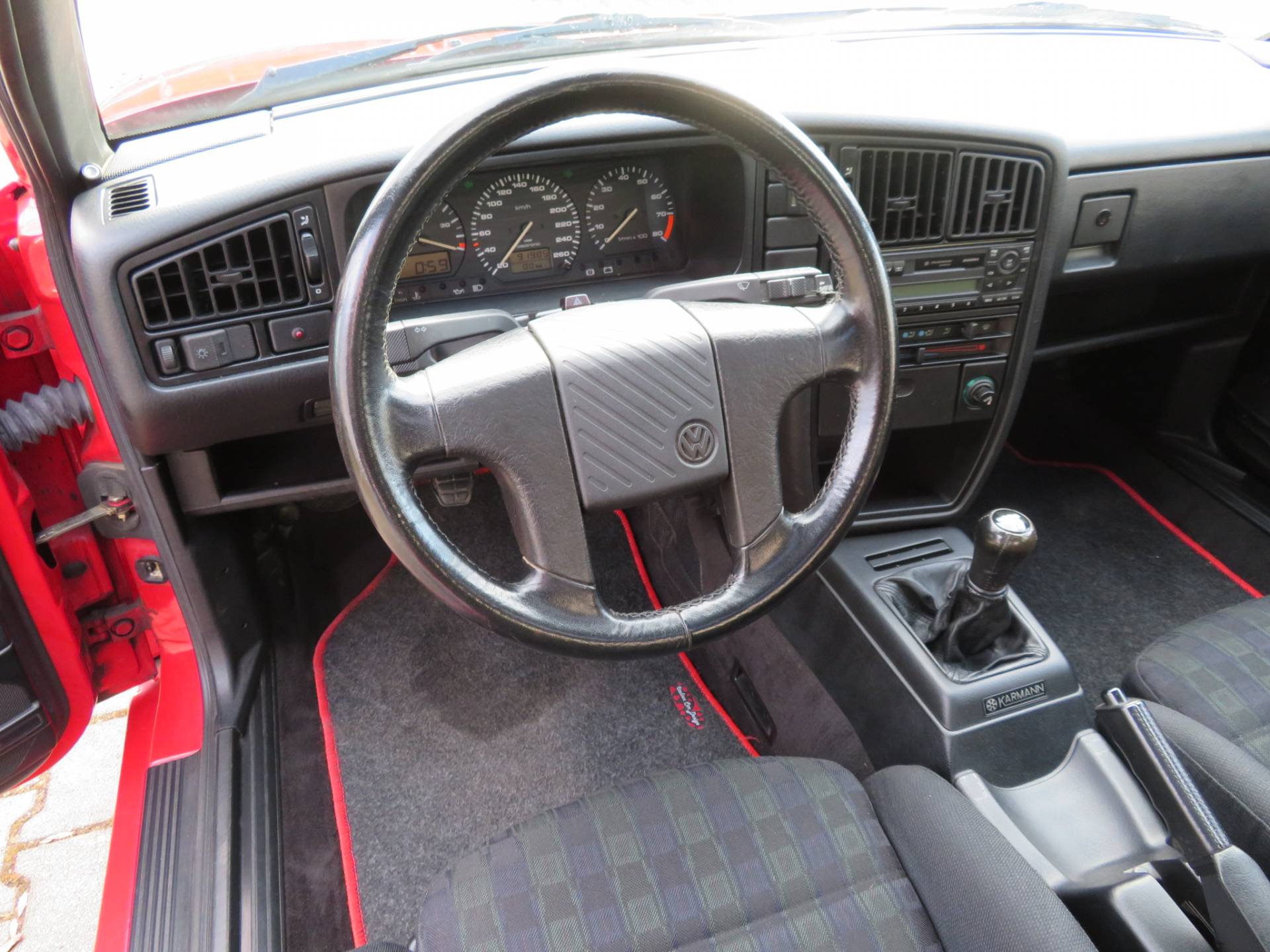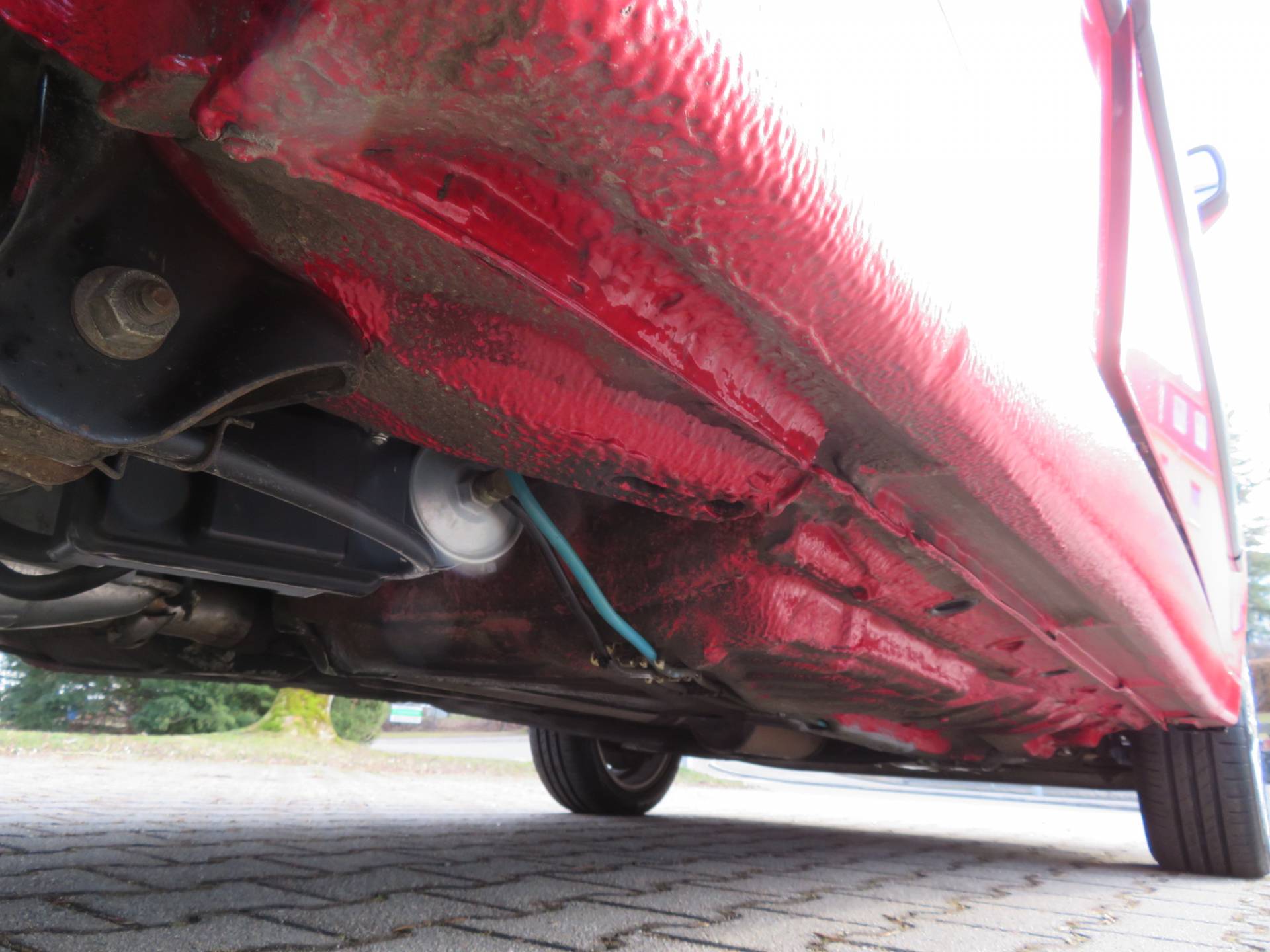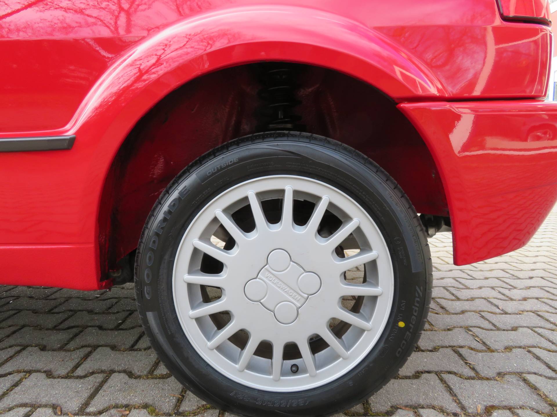 Äußerlich präsentiert sich der VW in sehr schönem Zustand ohne nennenswerte Gebrauchspuren oder Schäden. Es gibt weder grobe Kratzer, Beulen, Dellen o. Steinschläge, der Lack glänzt noch sehr schön, das lässt auf Garagenhaltung schließen da rote Lacke meist blind werden. Die Felgen sind tadellos, Beleuchtungsgläser und Scheiben sind unbeschädigt, Stoßstangen nicht angefahren, der Unterboden ist weitgehend sauber und rot wie ab Werk. Dichtungen und Plastikanbauteile sind nicht spröde und matt. Lediglich der Frontspoiler hat zwei kleine Anfahrisse. Ein echter Hingucker!