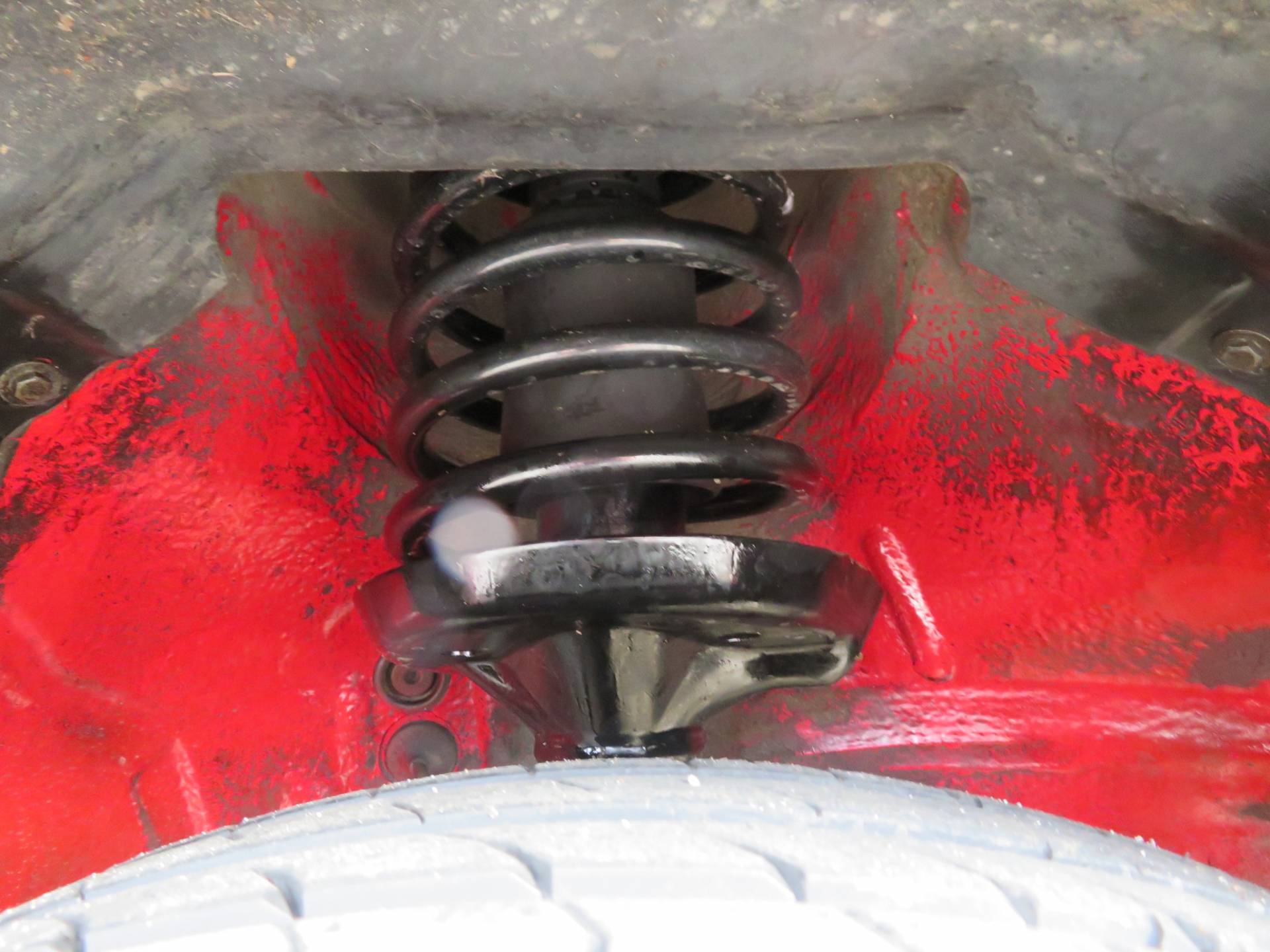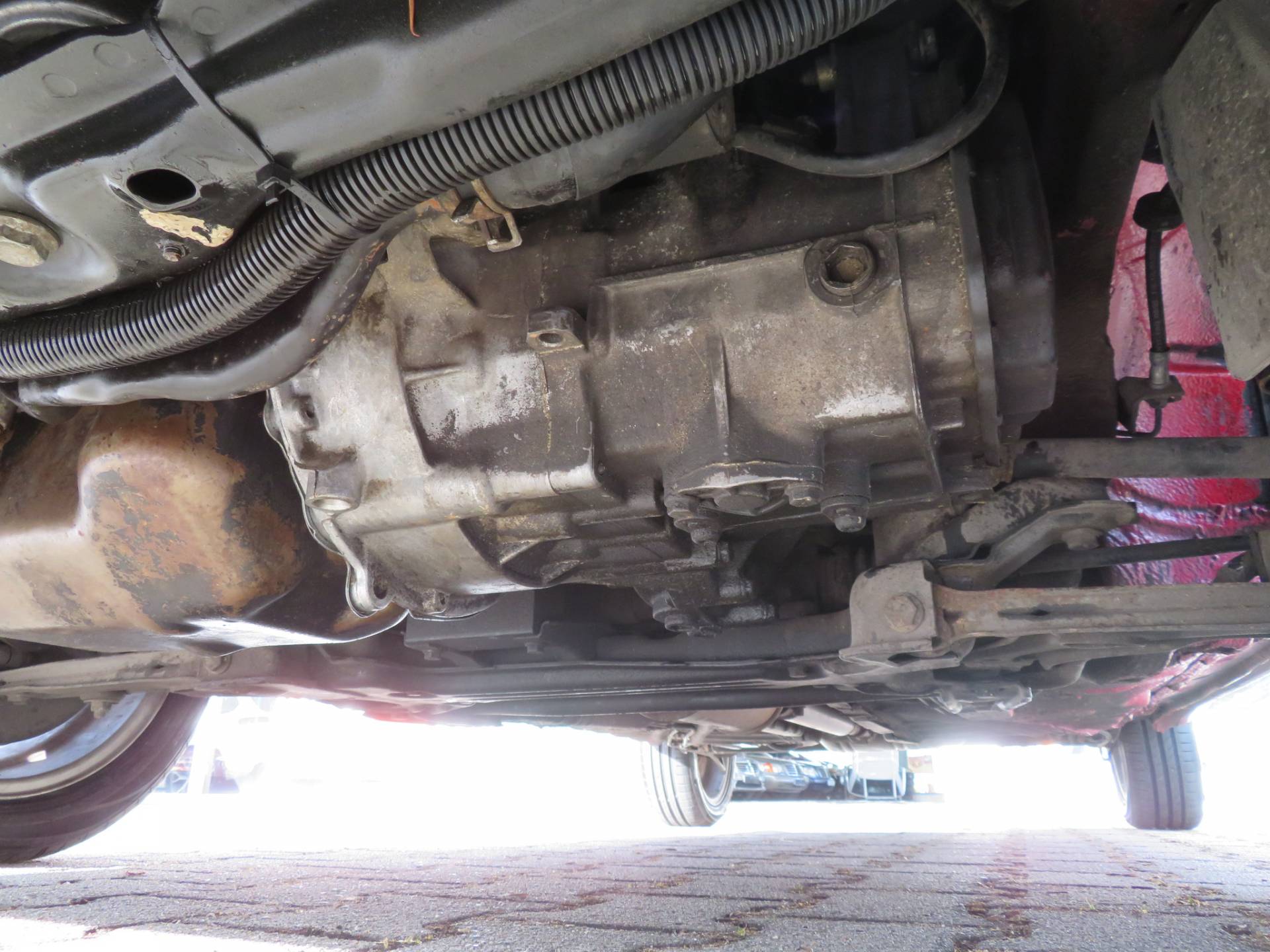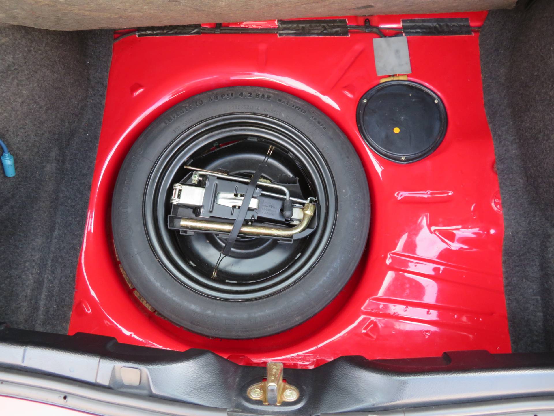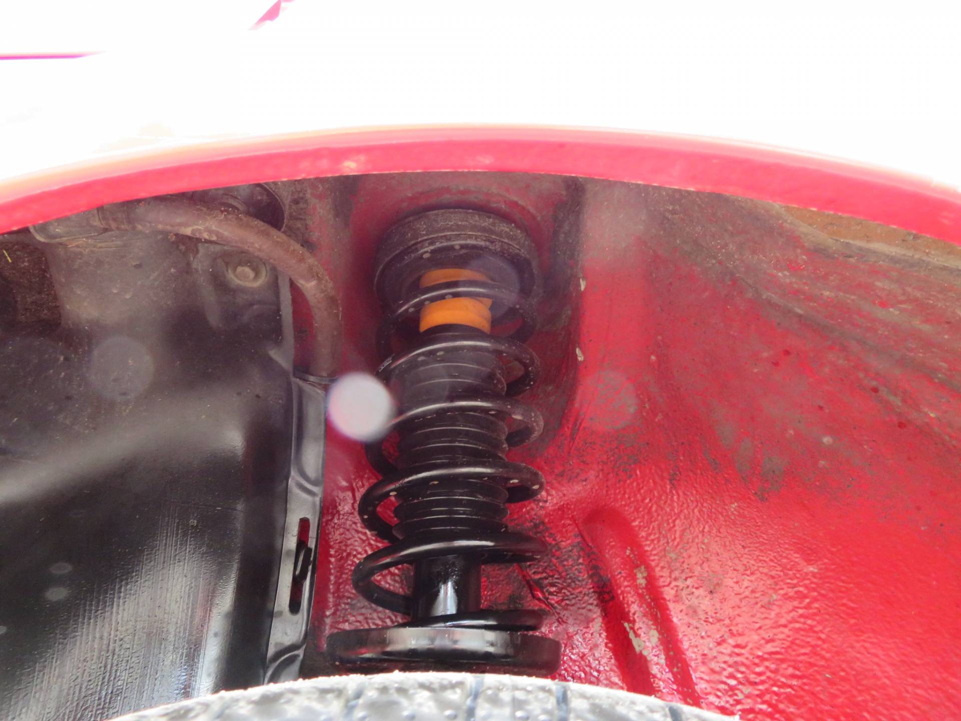 Äußerlich präsentiert sich der VW in sehr schönem Zustand ohne nennenswerte Gebrauchspuren oder Schäden. Es gibt weder grobe Kratzer, Beulen, Dellen o. Steinschläge, der Lack glänzt noch sehr schön, das lässt auf Garagenhaltung schließen da rote Lacke meist blind werden. Die Felgen sind tadellos, Beleuchtungsgläser und Scheiben sind unbeschädigt, Stoßstangen nicht angefahren, der Unterboden ist weitgehend sauber und rot wie ab Werk. Dichtungen und Plastikanbauteile sind nicht spröde und matt. Lediglich der Frontspoiler hat zwei kleine Anfahrisse. Ein echter Hingucker!