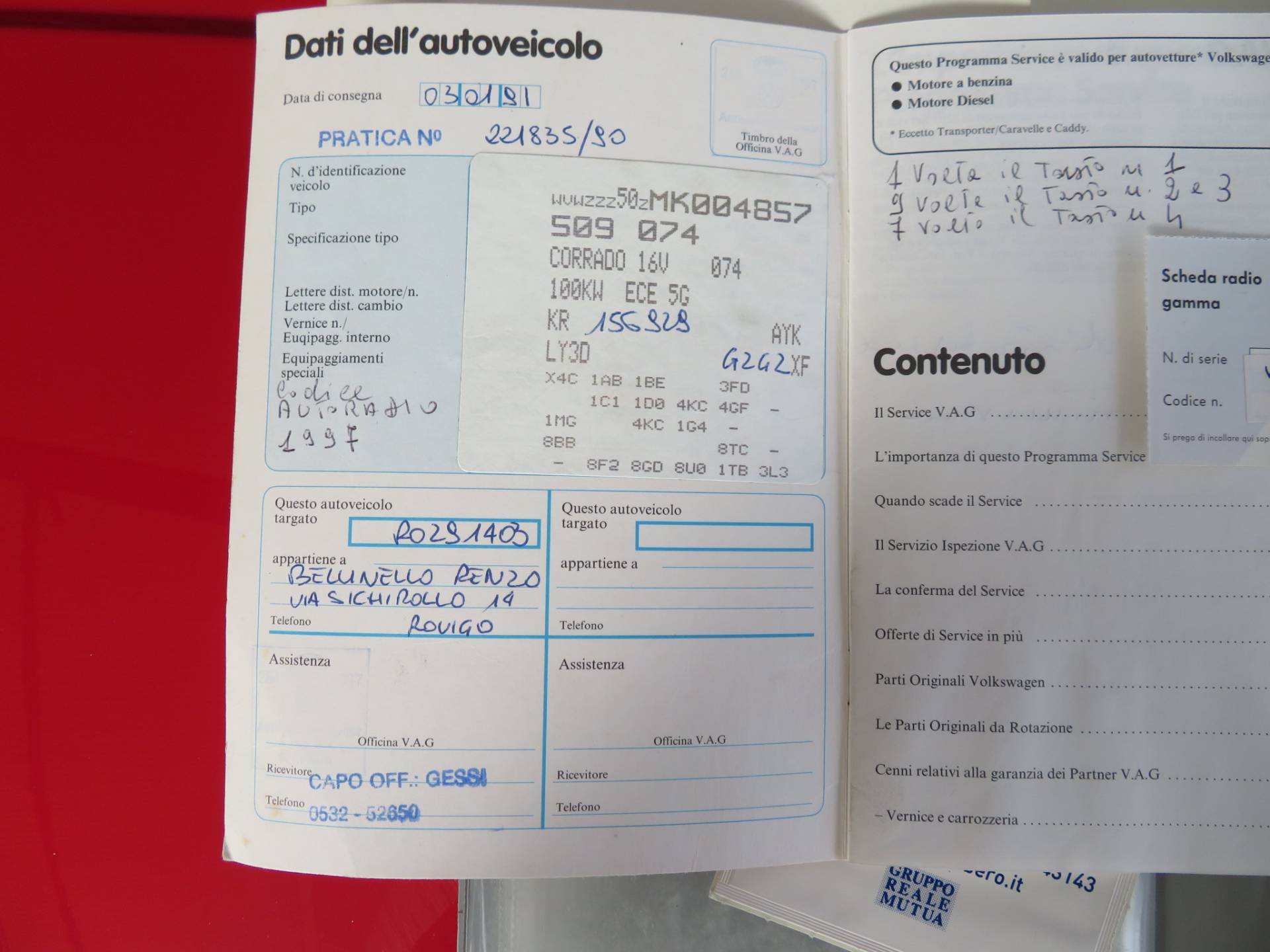 Die Laufleistung ist als abgelesen anzusehen, da eindeutige Belege dazu fehlen- das Scheckheft hat, wie meist in Italien nur den ersten Eintrag. Der überdurchschnittl. Zustand lässt die 92000km als sehr glaubhaft erscheinen.